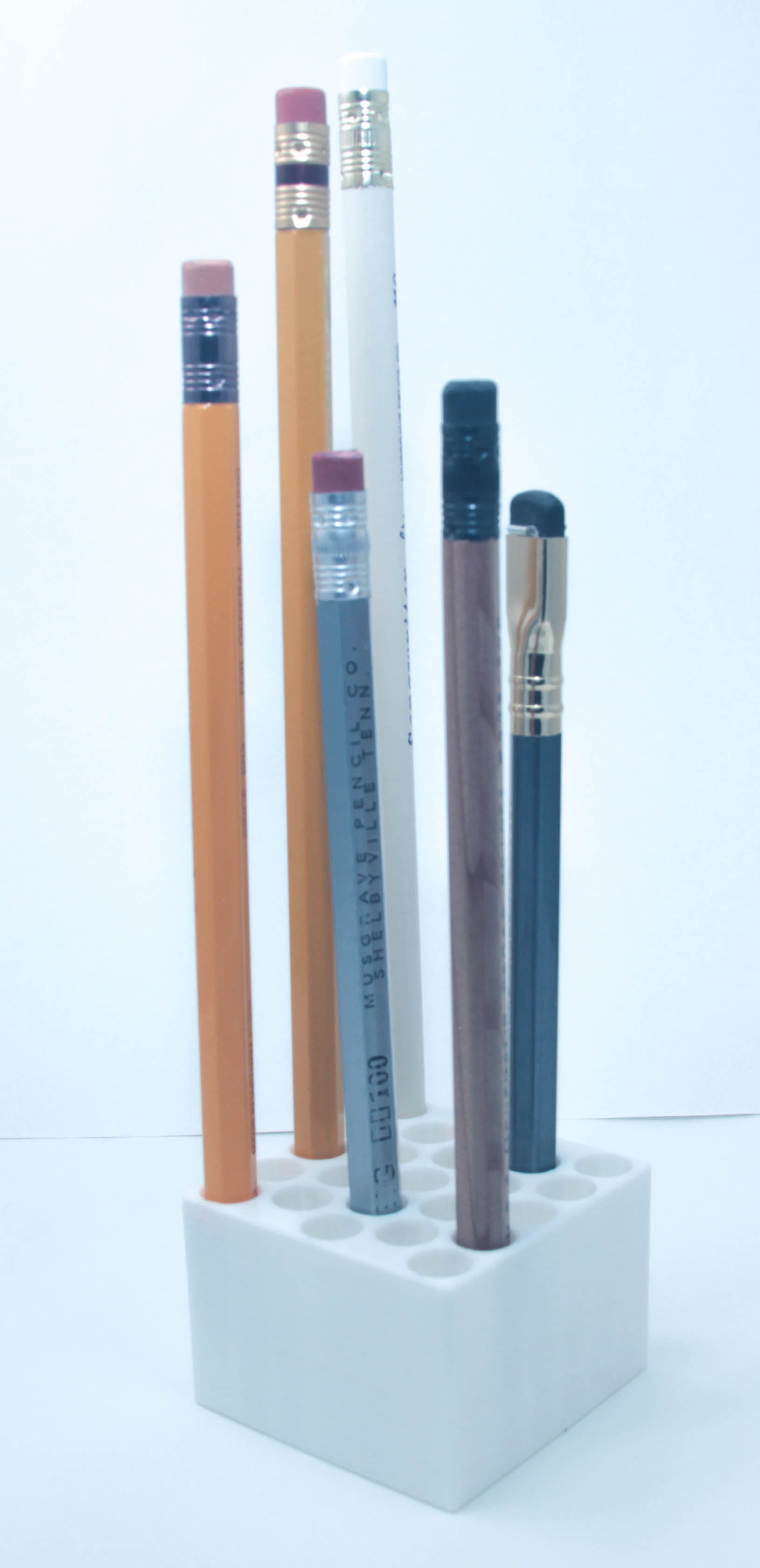 Pencil holder PH-A is low-profile so you can find which pencil you want to use quicker. It saves desk space and it features 23 individual pencil-hugging slots that prevents tips from making contact with the base.